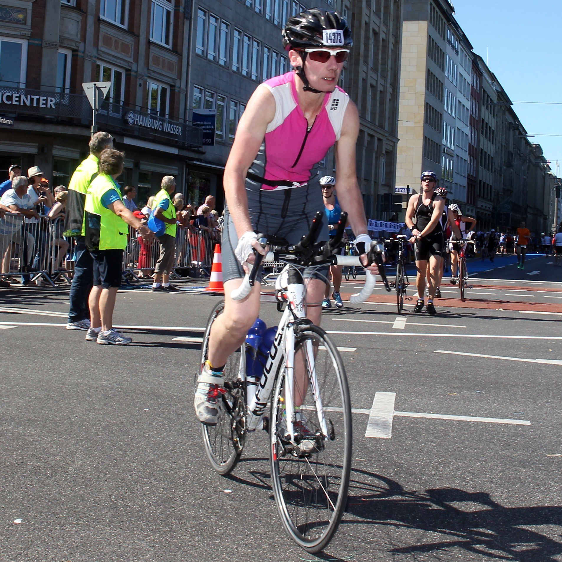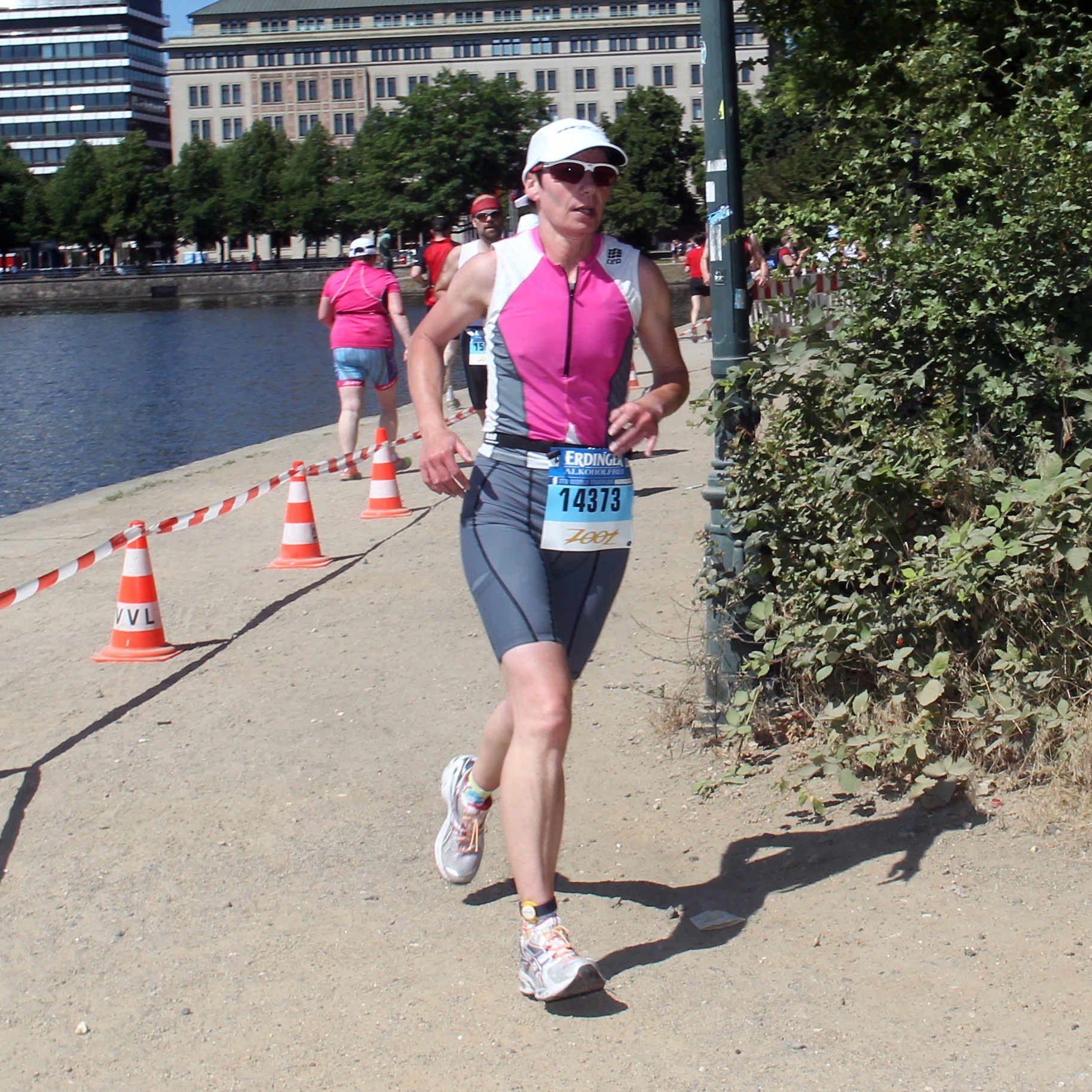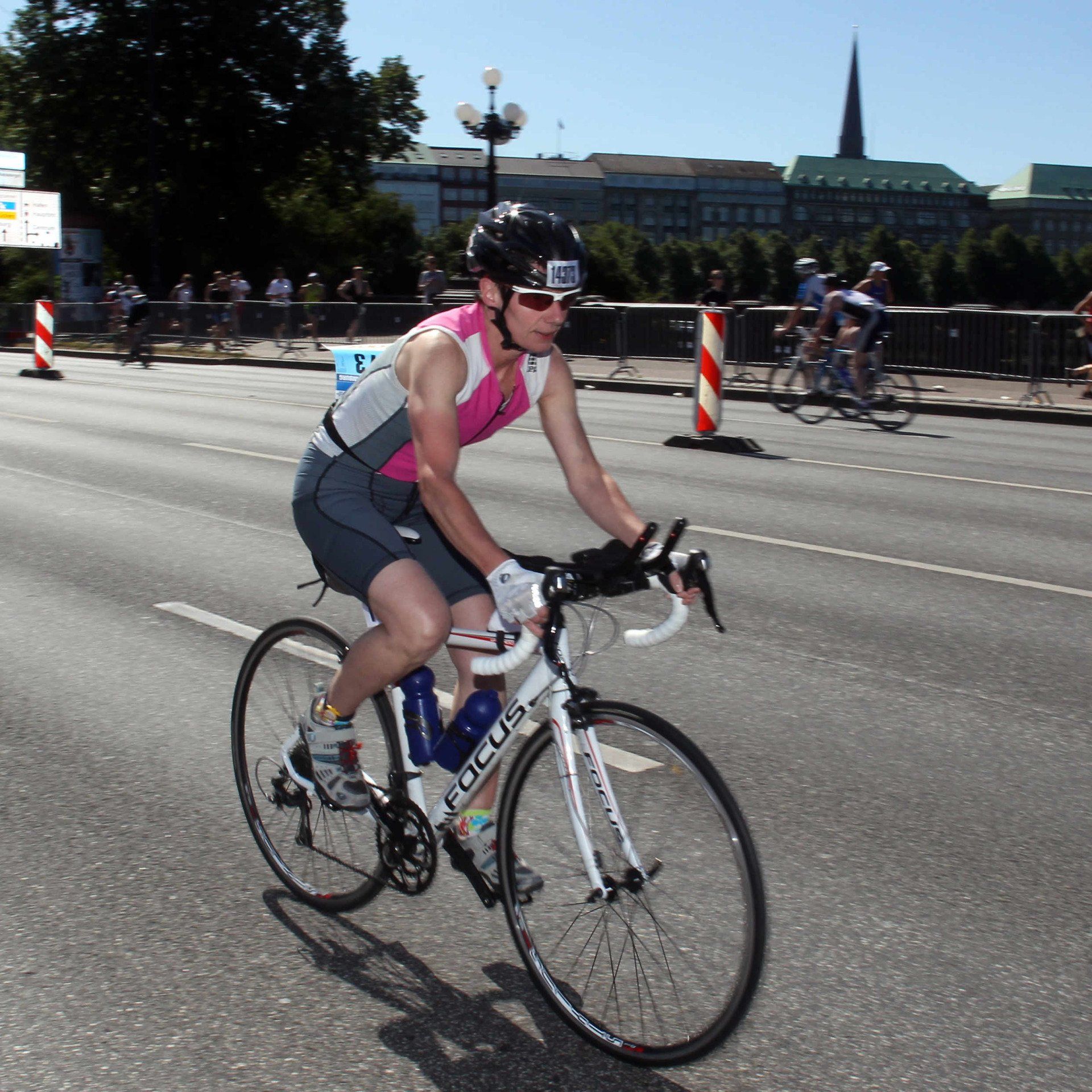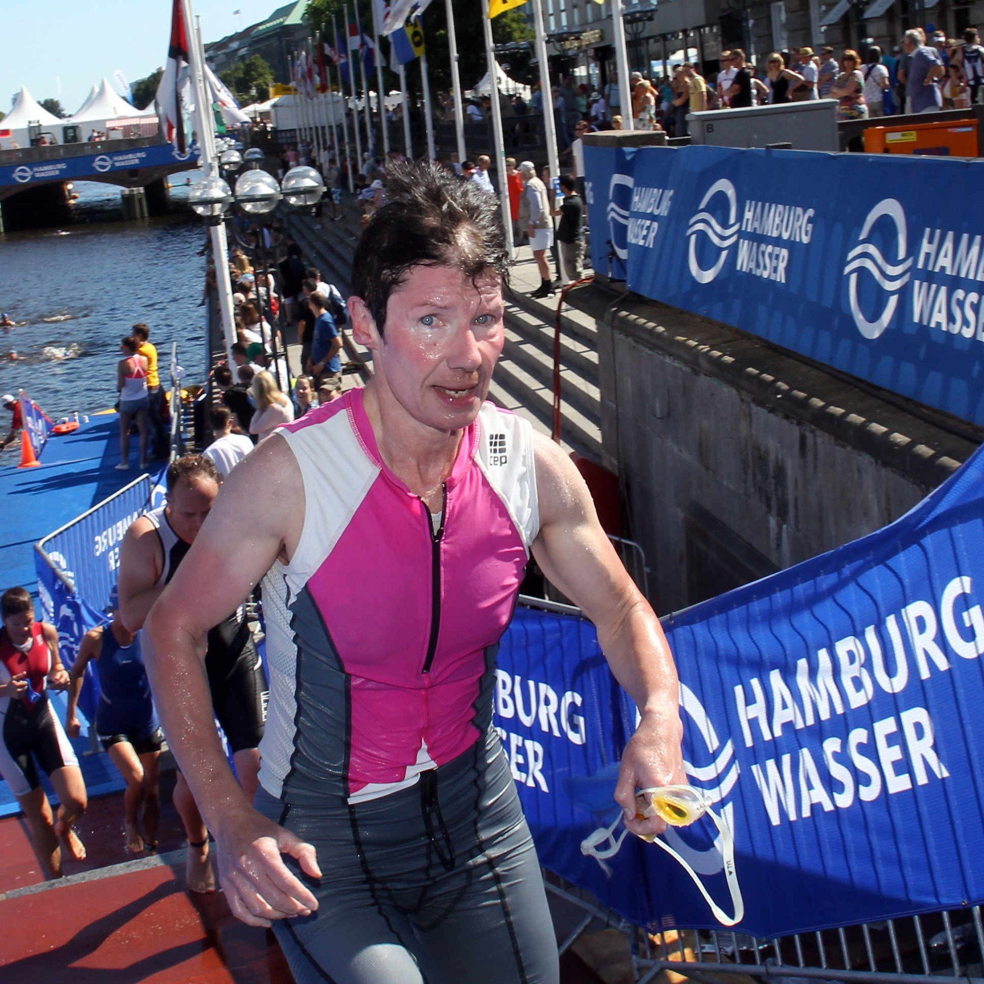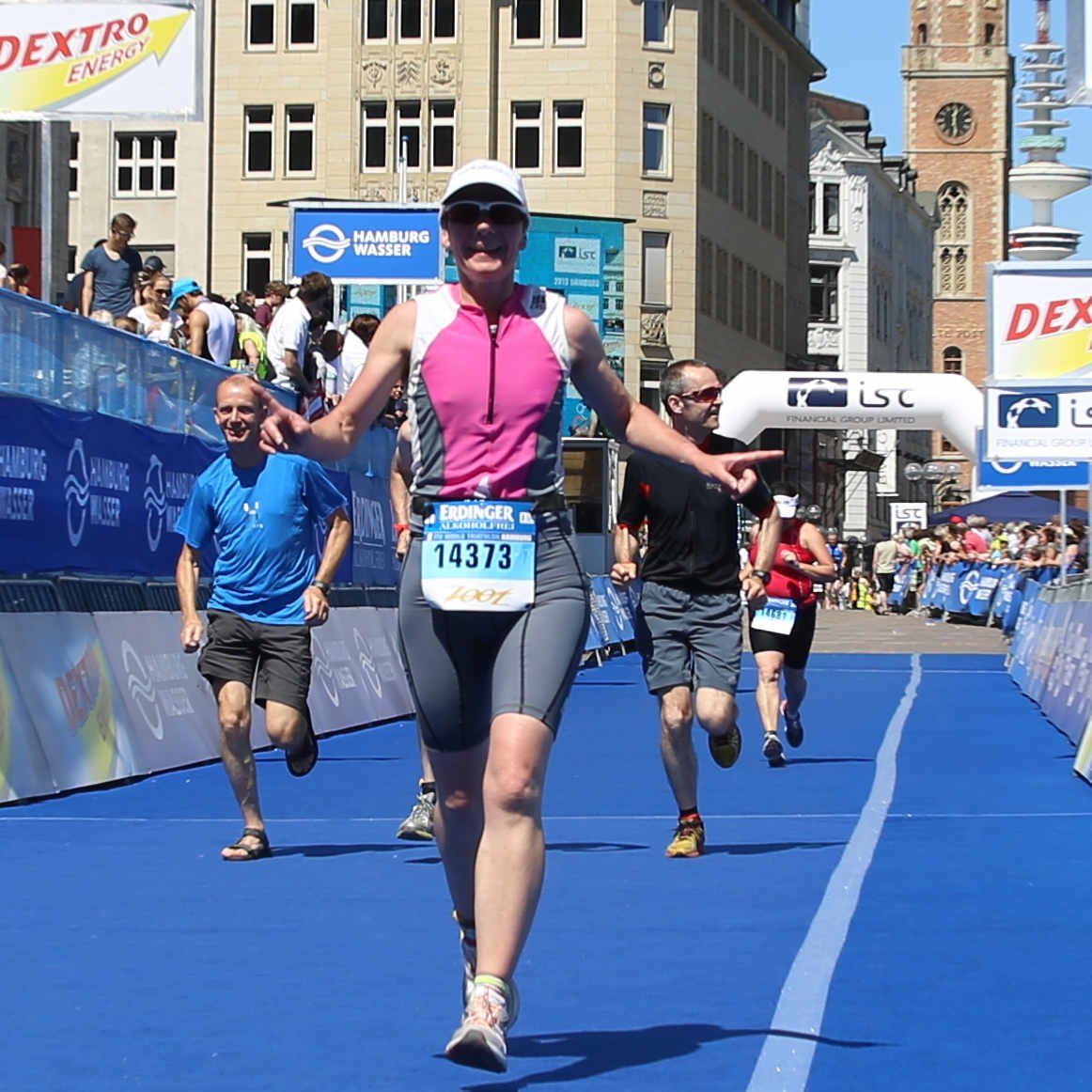 Am 21. July 2013 nahm Claudia Weber am Jedermann Triathlon im Rahmen des ITU World Triathlon in Hamburg teil. Nach 500 Meter schwimmen in der Binnenalster folgte eine 20 Kilometer Radrunde und abschließendem 5 Kilometerlauf. Nach dem das Schwimmen noch planmäßig verlaufen war, mußte Claudia während des Radsplits mit zwei Reifenpannen zu recht kommen. Doch Sie ließ sich nicht aus der Ruhe bringen und wechselte den Schlauch. Anschließen ging Sie auf die Laufstrecke rund um die Binnenalster und konnte dann am Hamburger Rathaus rund ein halbes Jahre nach Ihrer Hüft OP erfolgreich finishen.